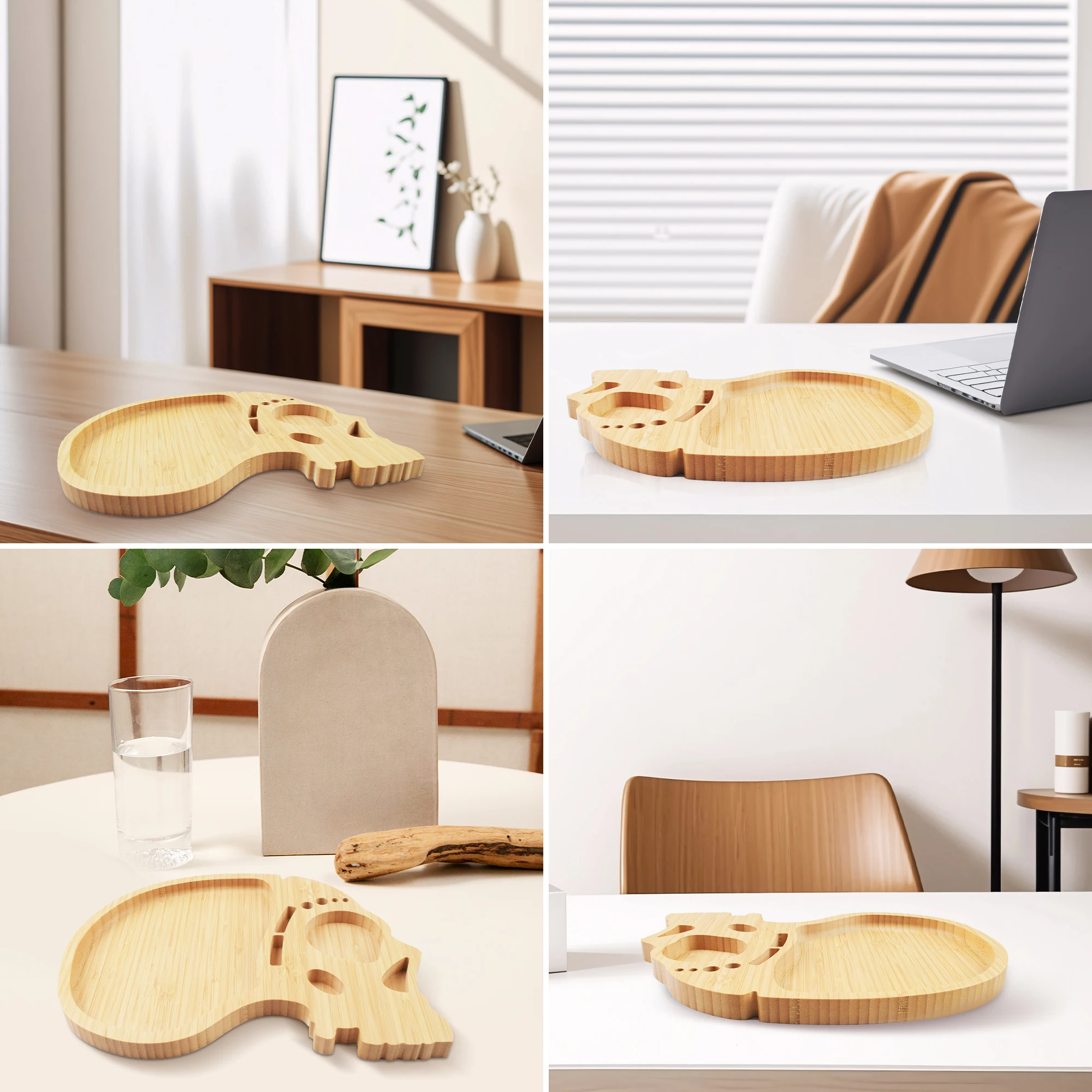 Bamboo Rolling Tray, Durable Large Smoke Tray, Cigarette Tray with Rolling Paper Grinder Filter-tips Cigarette and Lighter Slot