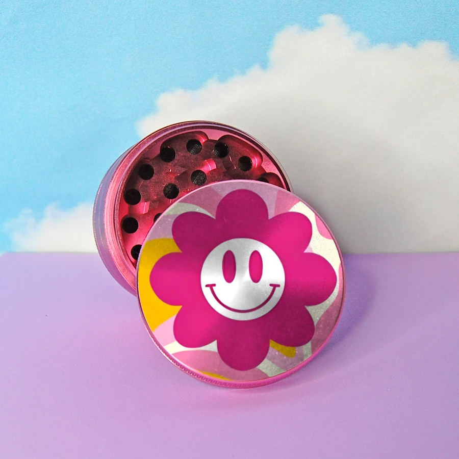 TOP Flower Happy Face Women Grinder 40MM Sweet Pink Grinder Machine Small 4 Layers Metal Crusher Gifts Smoking Accessories